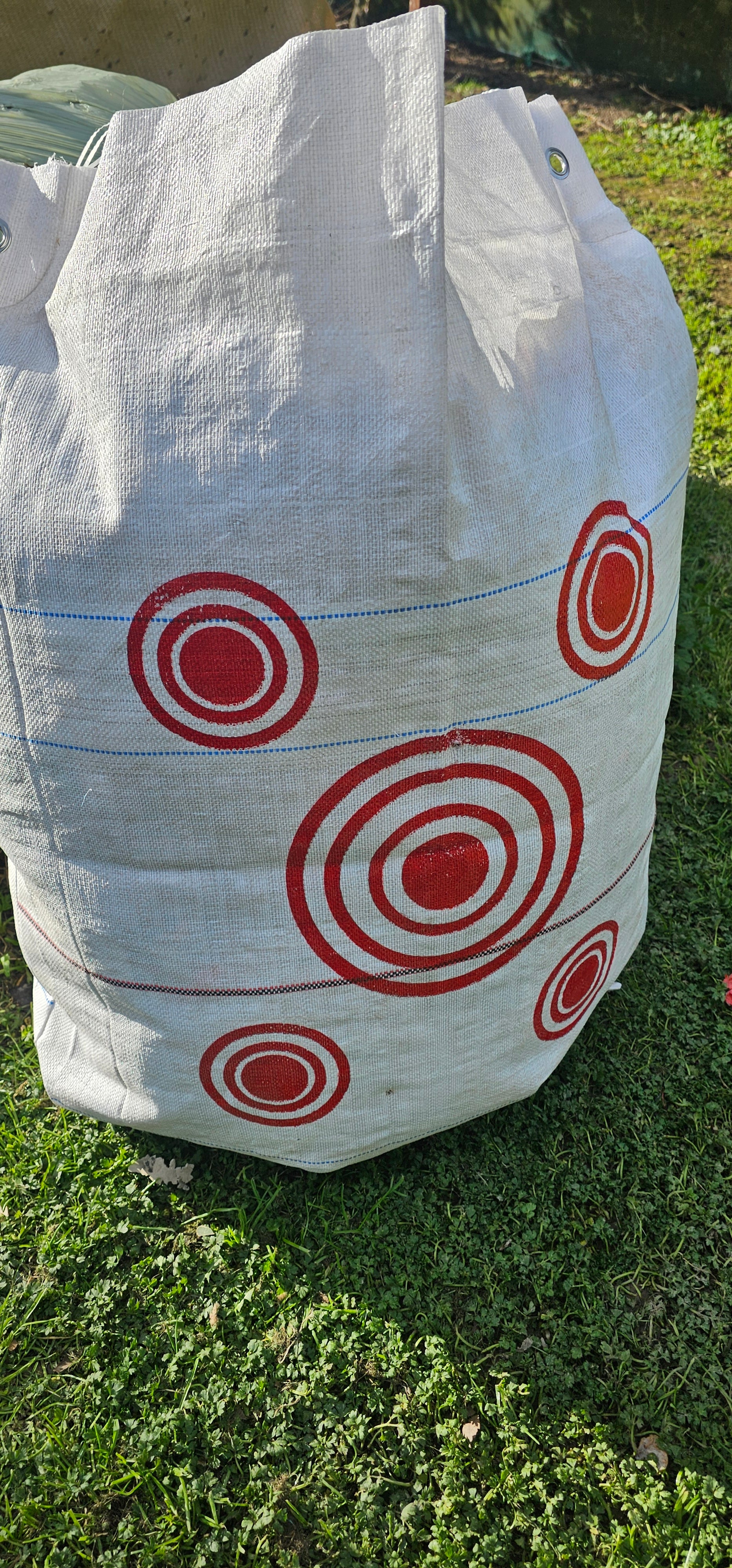 High density poly propylene target bag with a printed target face for convenient target shooting. Simply fill the bag with a material such as dense foam, hay, plastic bags or carpet and hang up in a safe location.