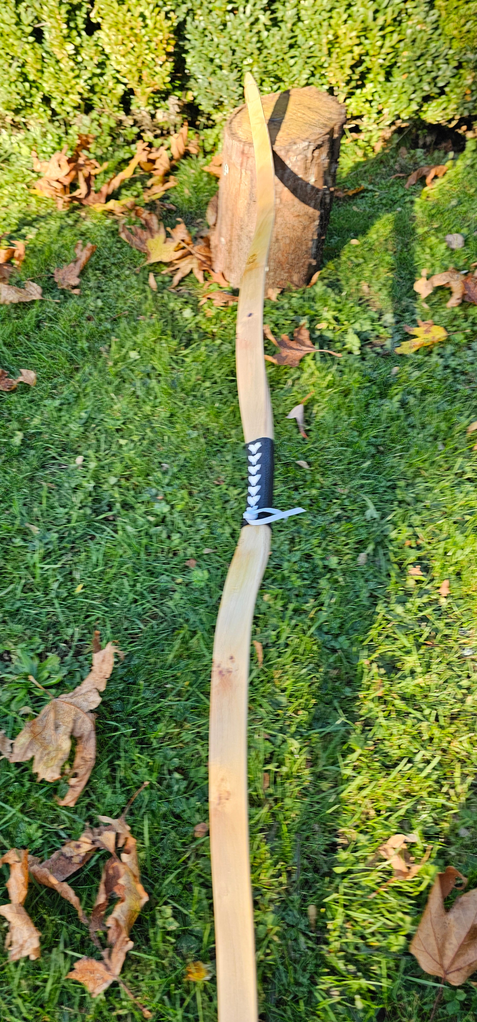 5. Hand protection - Traditional bows such as this one rely on the arrow resting on the side of the bow, and once in-flight the feather of the arrow can graze the fleshy part of your hand between your thumb and index finger. It is highly recommended to place a piece of leather here, or to use a dedicated hand guard/glove to avoid feather cuts.
